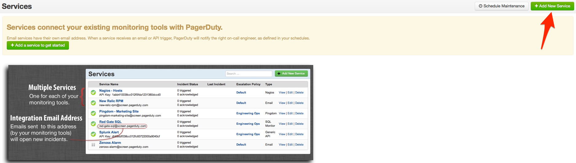 Log onto your PagerDuty website and look for the action to “Add New Service.”